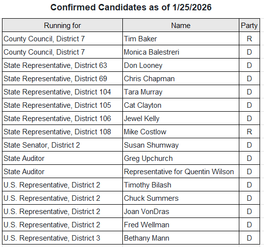Below is the list of Candidates that have confirmed their attendance as of Jan 25, 2026: