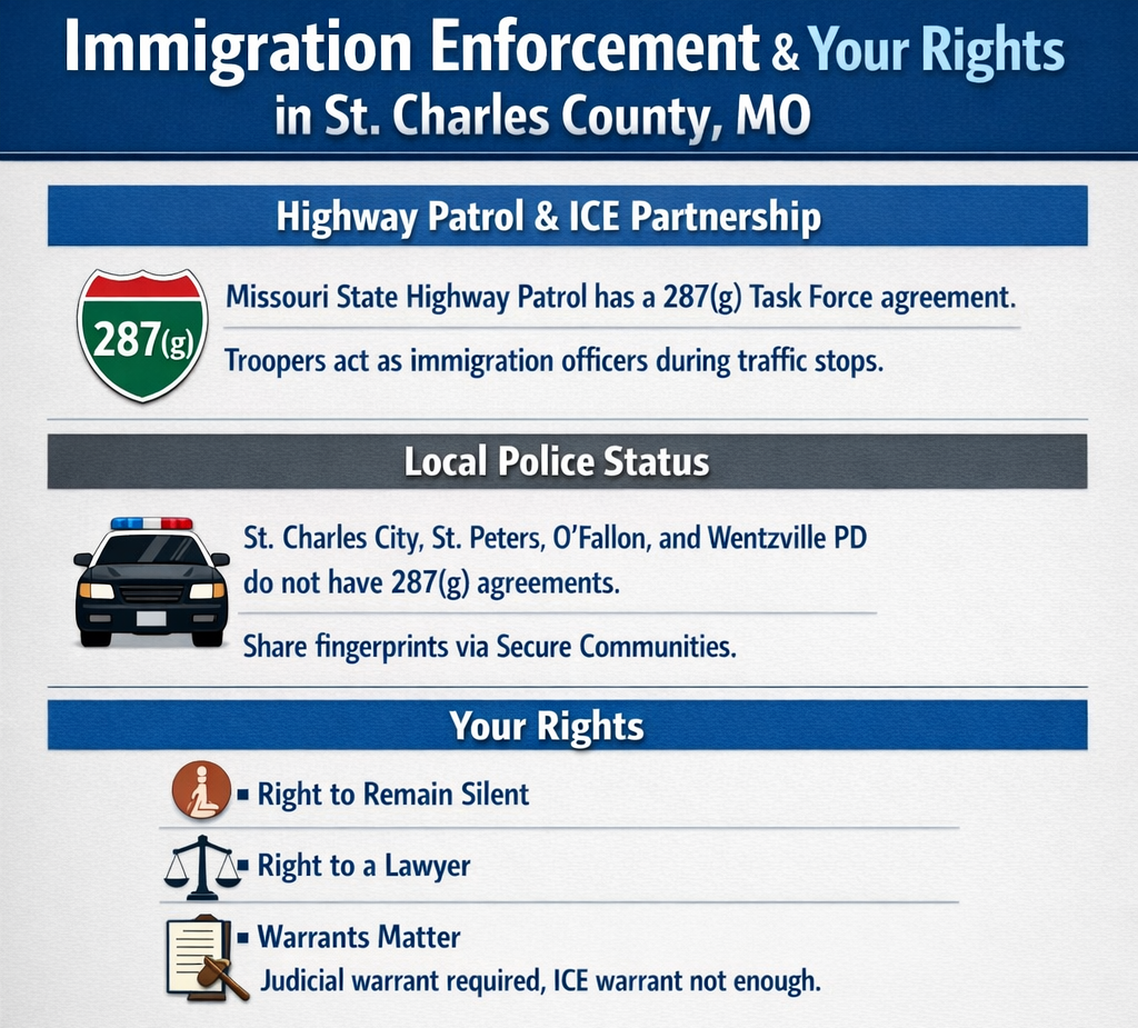 As of 2025, the Missouri State Highway Patrol (MSHP) has entered a 287(g) Task Force agreement. This means troopers patrolling our highways (I-70, I-64, etc.) are trained and authorized to act as immigration officers during routine traffic stops.