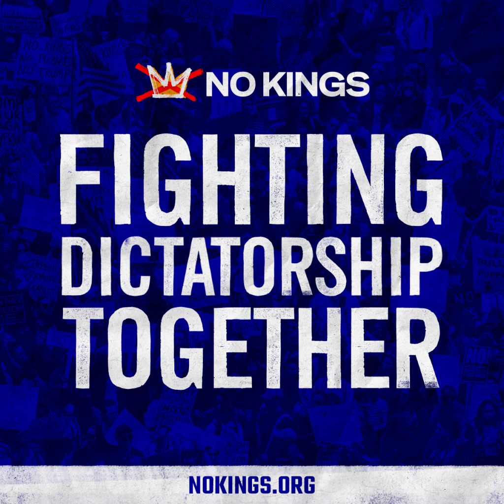 This is for a peaceful, nonviolent First Amendment protest against the wanna-be King and his regime. They are dismantling our democratic republic with cruelty and disregard for the rule of law. A core principle behind all No Kings events is a commitment to nonviolent action with no civil disobedience. All participants should de-escalate any potential confrontation with those who disagree with our values. Participants are expected to act lawfully at these events.